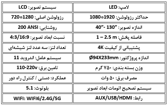 مشخصات فنی پروژکتور هوشمند 4k مدل P1700S