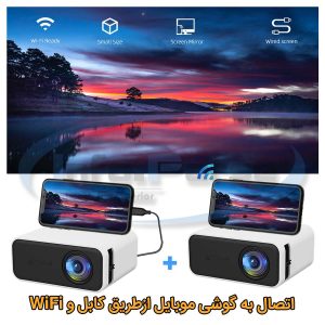 مینی ویدئو پروژکتور ارزان مدل T500 یک پروژکتور قابل حمل بوده و از وای فای پشتیبانی می نماید (WiFi Ready) و میتوان آن را به گوشی های موبایل اندروید و آیفون از طریق پورت USB و ویژگی Wireless Screen / Screen Mirror متصل کرد و نیز از روشهای ارتباط Miracast/Airplay/DLNA نیز پشتیبانی می نماید.