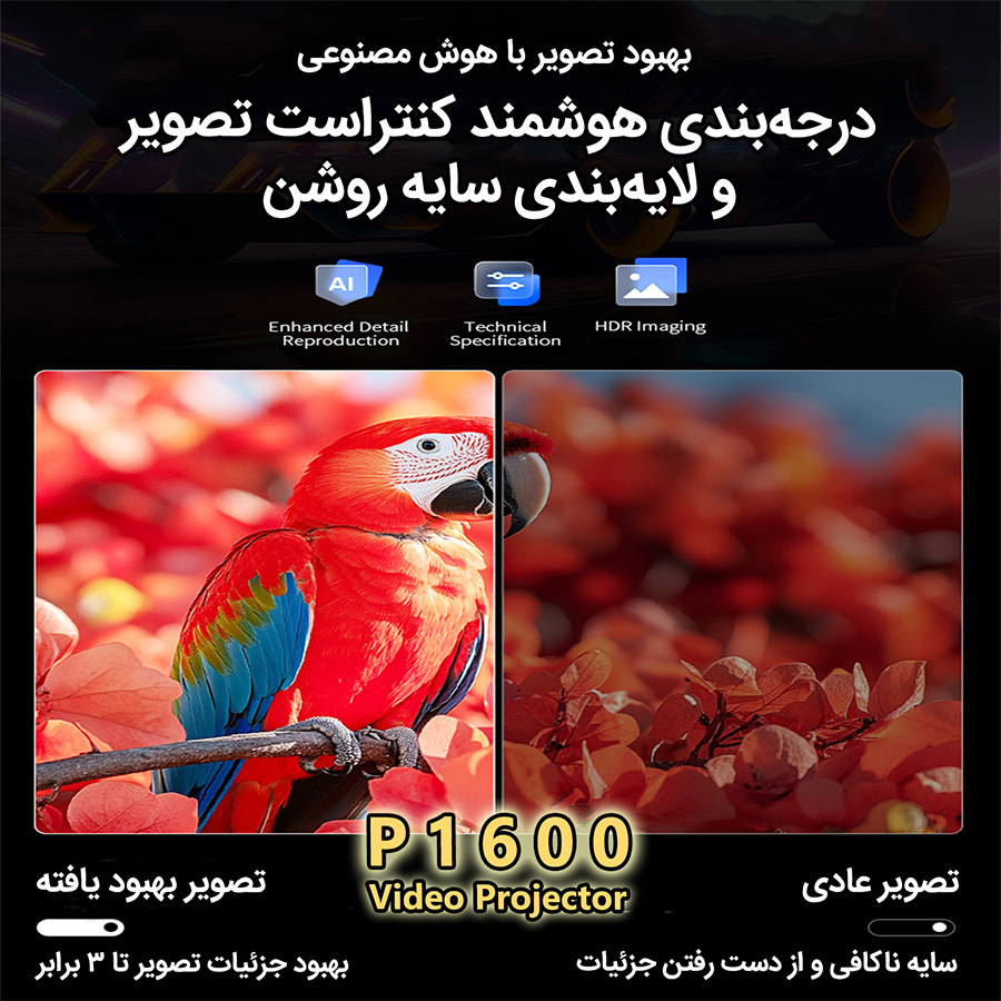 با ویدئو پروژکتور 4K مدل P1500S از برند اینفوپارسه، سینمای خانگی بیمانندی را تجربه کنید. این دستگاه با طراحی سبک و قابل حمل، قابلیت نمایش تصاویر فوقالعاده بزرگ تا سایز 130 اینچ را فراهم میسازد و لذت تماشای فیلمها را به سطحی جدید ارتقا میدهد. با استفاده از تکنولوژی پیشرفته LED و امکان چرخش 180 درجه، تجربهای از تصاویر با وضوح چشمگیر و صداهایی شفاف و قدرتمند ارائه میدهد، آن هم بدون محدودیت در انتخاب سطح پخش. این پروژکتور همچنین بهسادگی امکان اتصال سریع به دستگاههایی نظیر گوشیهای اندرویدی و آیفون، لپتاپها و کنسولهای بازی از جمله پلیاستیشن را فراهم کرده است و به یک ابزار همهفنحریف تبدیل شده. طراحی جمع و جور و قابلیت حمل آسان آن، شما را قادر میسازد تا در هر زمان و هر مکان از نمایش تصاویر با کیفیت بالا و تجربهای متفاوت لذت ببرید.
