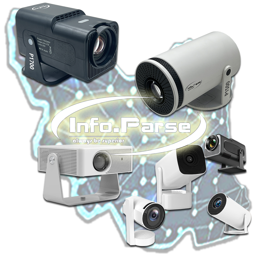 برند پروژکتورها «اینفوپارسه infoparse» است و به درخواست مجموعه اینفوپارسه به عنوان تنها شرکت فعال در زمینه تامین، توزیع و پشتیبانی پروژکتور در ایران، ویژگیهای فنی آن توسط شرکت سازنده برای بازار ایران بهینه شده اند.